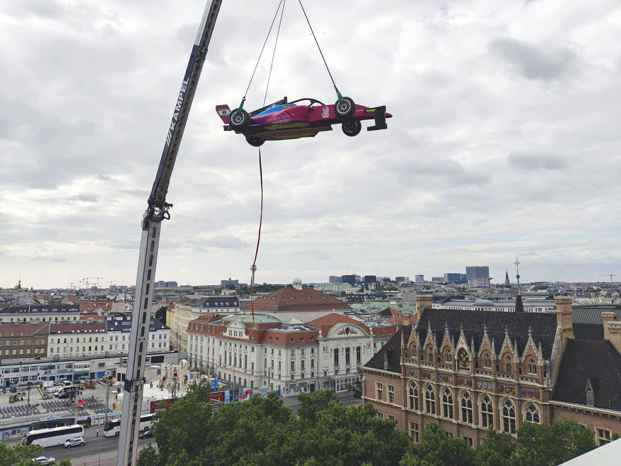 On Saturday, “The Grand Prix Preview” was a culinary brunch highlight accompanied by sparkling champagne, signature cocktails, and a live DJ featuring the Formula 1 qualifying at the Red Bull Ring, with live commentary from F1 expert Harry Miltner in the elegant D-Bar. For the first time in Vienna, a Tatuus F4 T421 Gen 2 Formula 4 racing car was lifted by crane almost 50 meters above the city’s rooftops onto the hotel’s roof terrace.