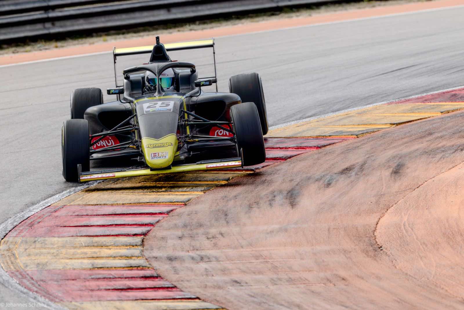 Schranz had raised his bar from session to session, becoming faster and faster on a track, which was again new to him. However, in race 1, the young Austrian was too fast, braked too hard at the end of the long straight, and by taking out two opponents destroyed the front of his Tatuus F4 in the process.